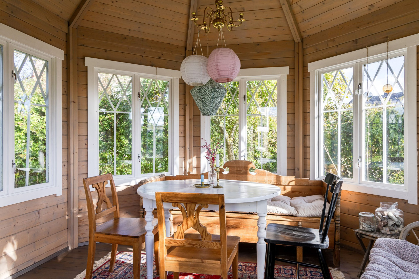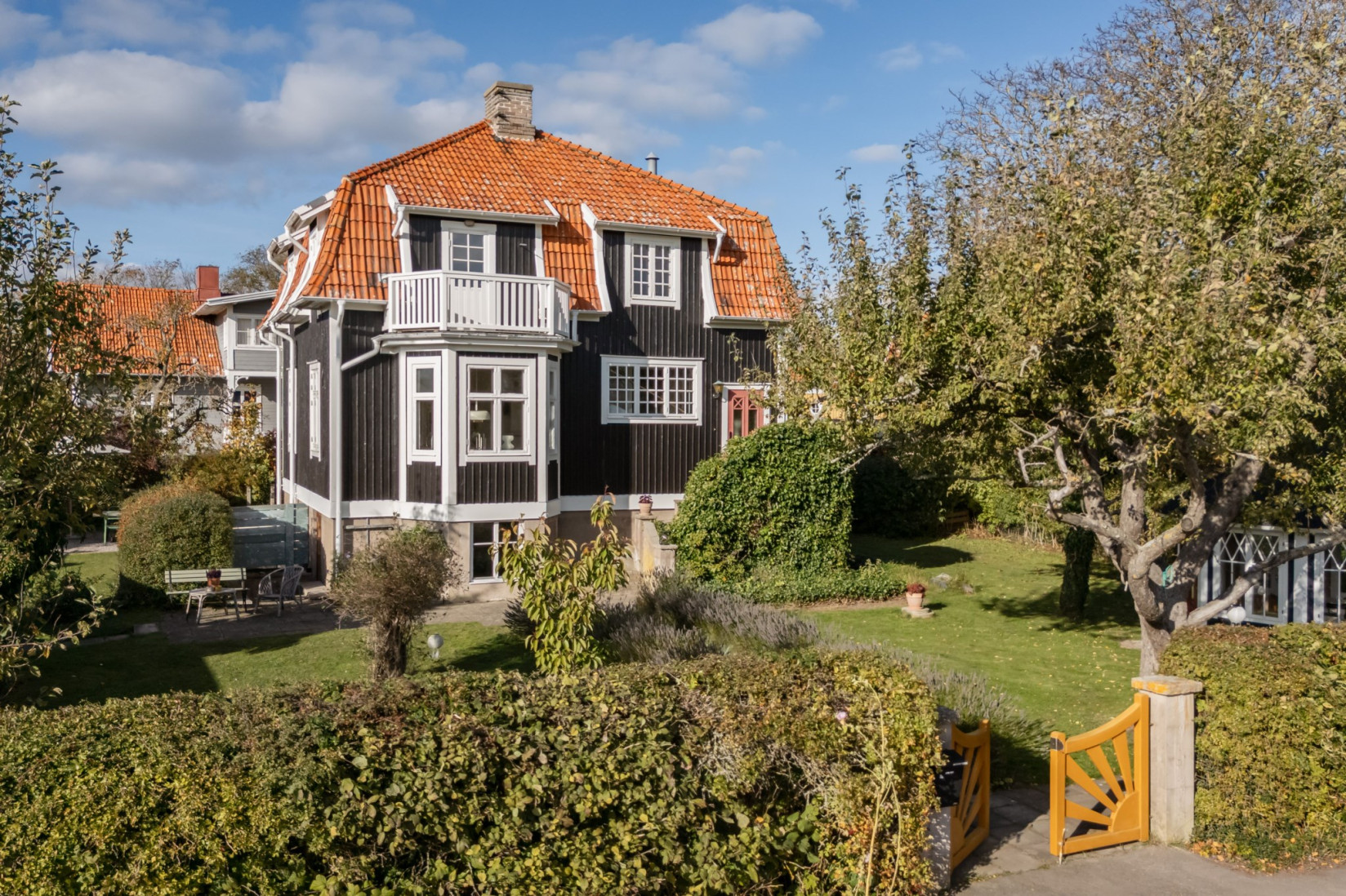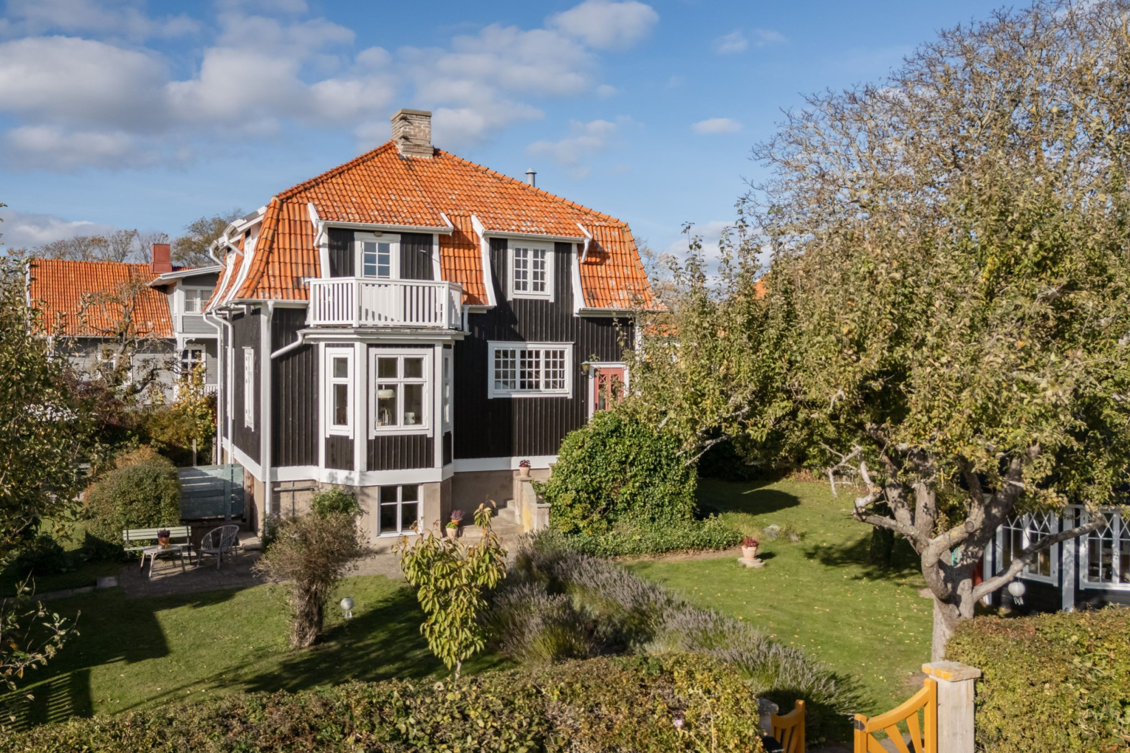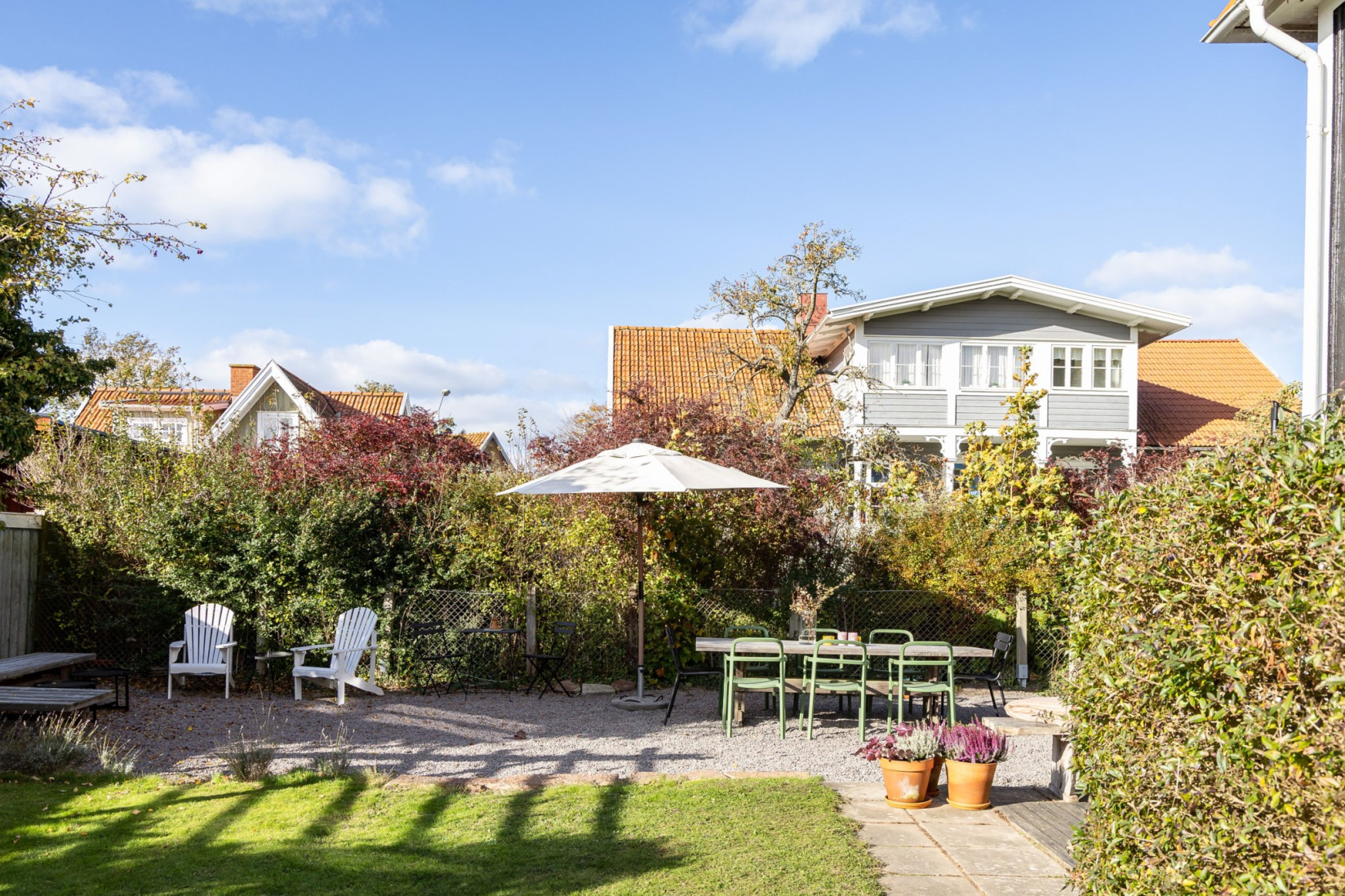 Efter att ha beundrat husets pampiga exteriör kliver du in på tomten och möts av en trädgård som är en liten oas i sig. Den är lummig, välskött och pryds av vackra planteringar, träd och flera inbjudande uteplatser. Här finns gott om plats för både lek, odling och stilla avkoppling. I det charmiga lusthuset kan du njuta av middagar i den varma kvällssolen, omgiven av fågelsång och doften av blommande buskar.