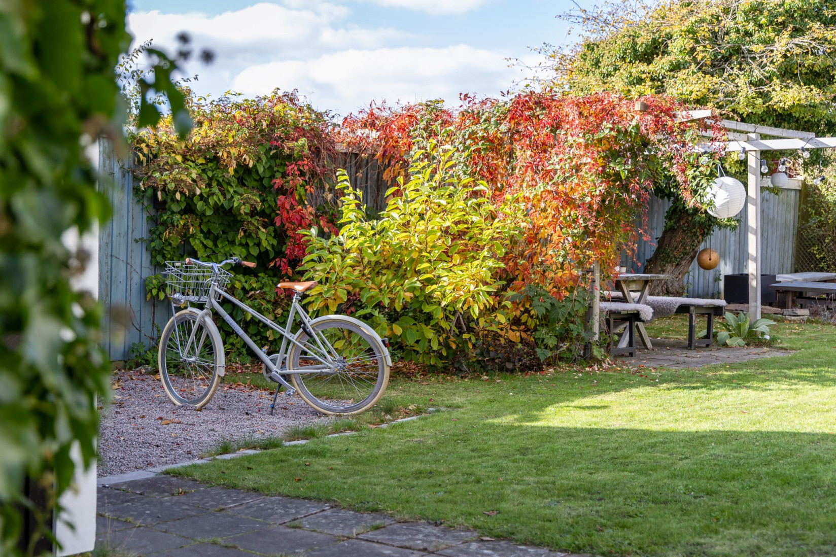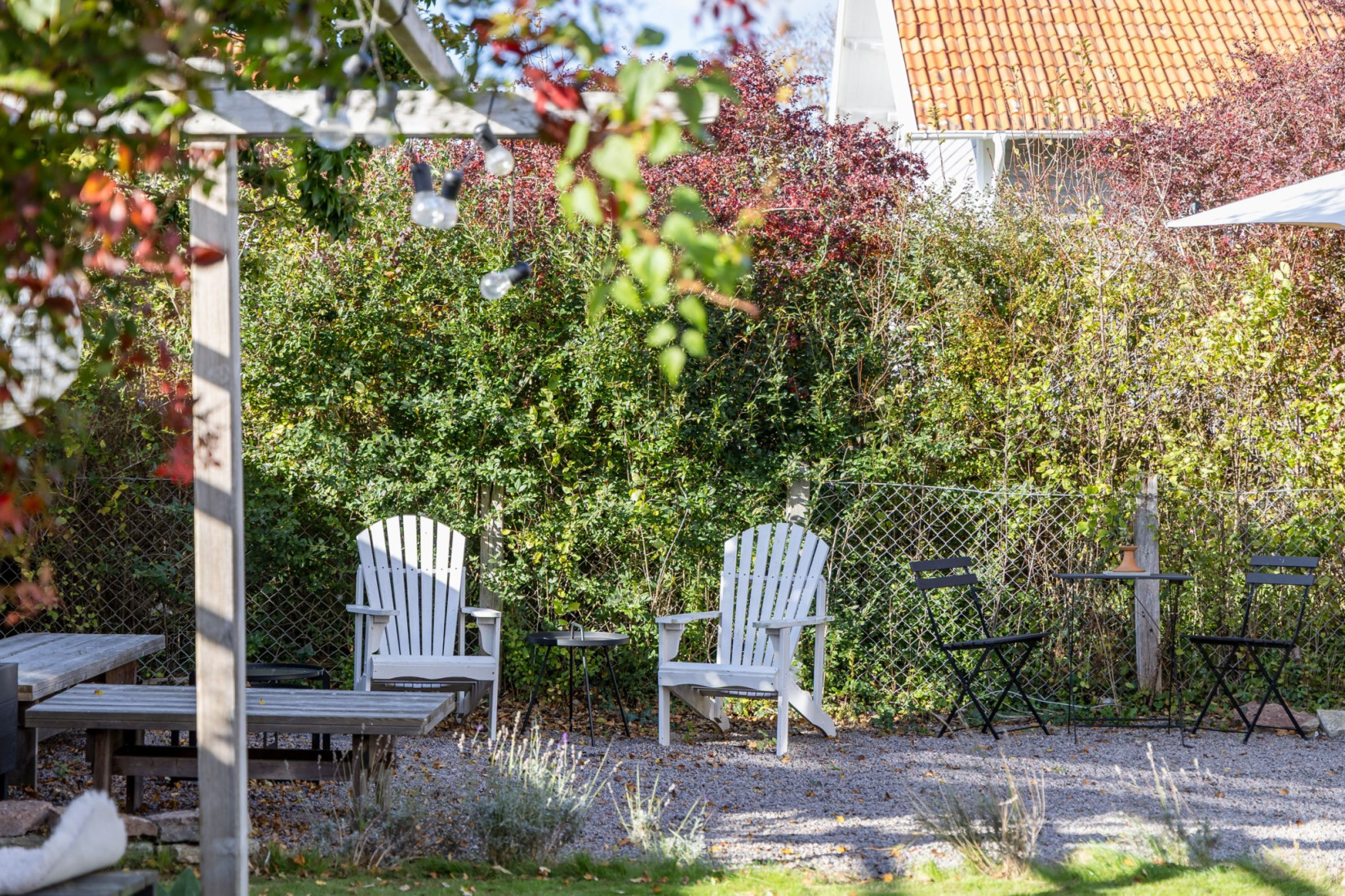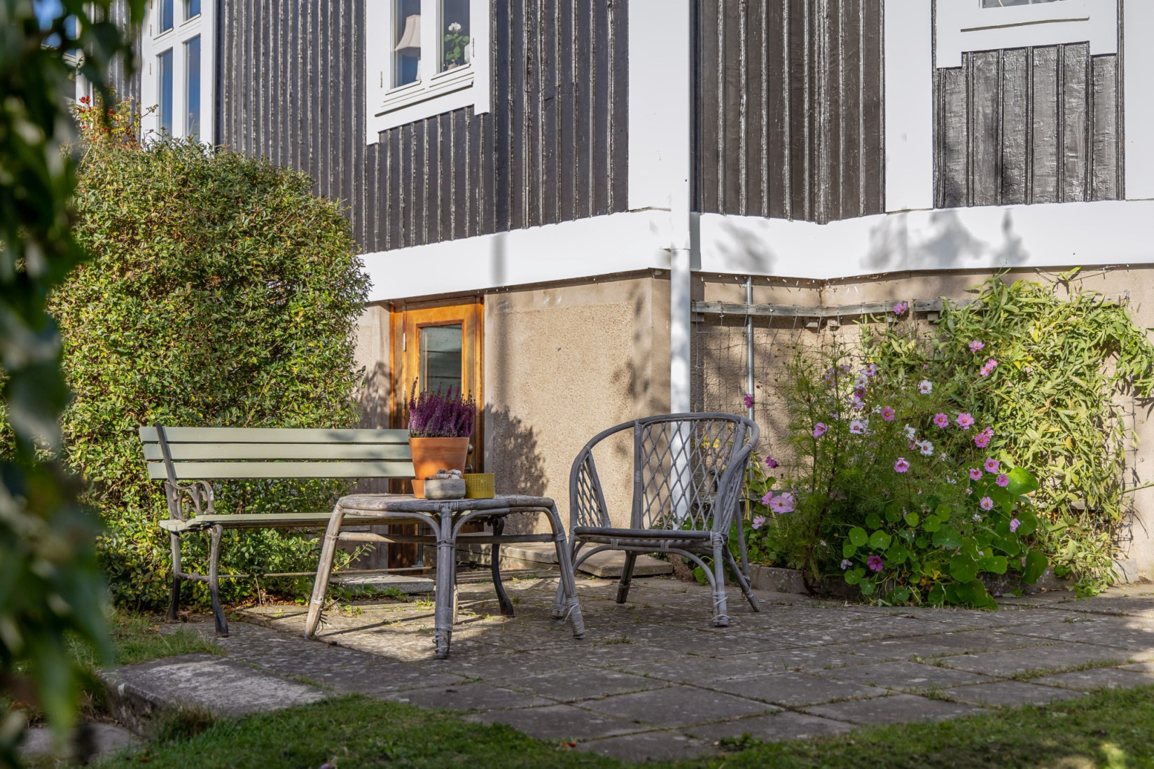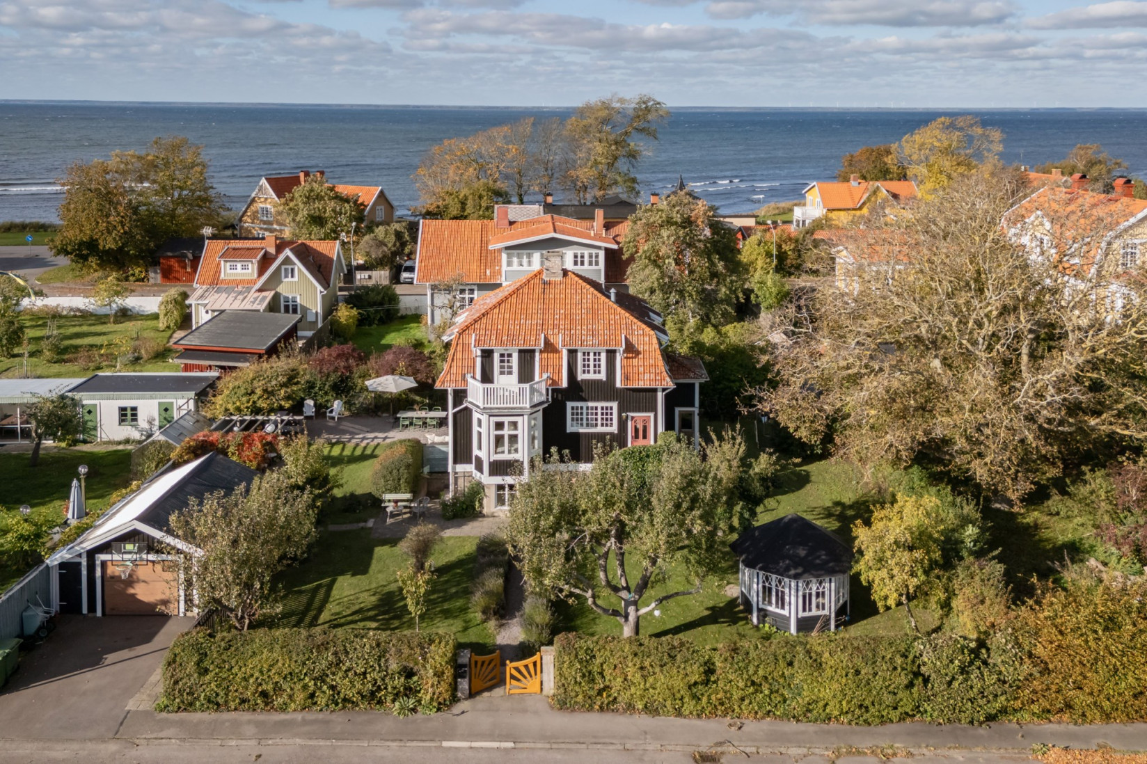 Efter att ha beundrat husets pampiga exteriör kliver du in på tomten och möts av en trädgård som är en liten oas i sig. Den är lummig, välskött och pryds av vackra planteringar, träd och flera inbjudande uteplatser. Här finns gott om plats för både lek, odling och stilla avkoppling. I det charmiga lusthuset kan du njuta av middagar i den varma kvällssolen, omgiven av fågelsång och doften av blommande buskar.