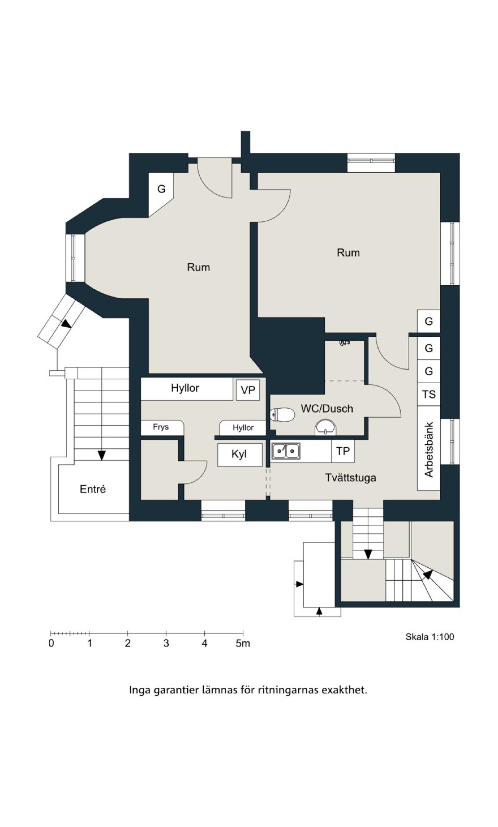 Källarplanet är både fräscht och funktionellt och erbjuder gott om förvaringsutrymmen, toalett och tvättstuga. Dessutom finns en separat del med egen ingång, perfekt för gäster, tonåring, hobbyverksamhet eller eventuell uthyrning.