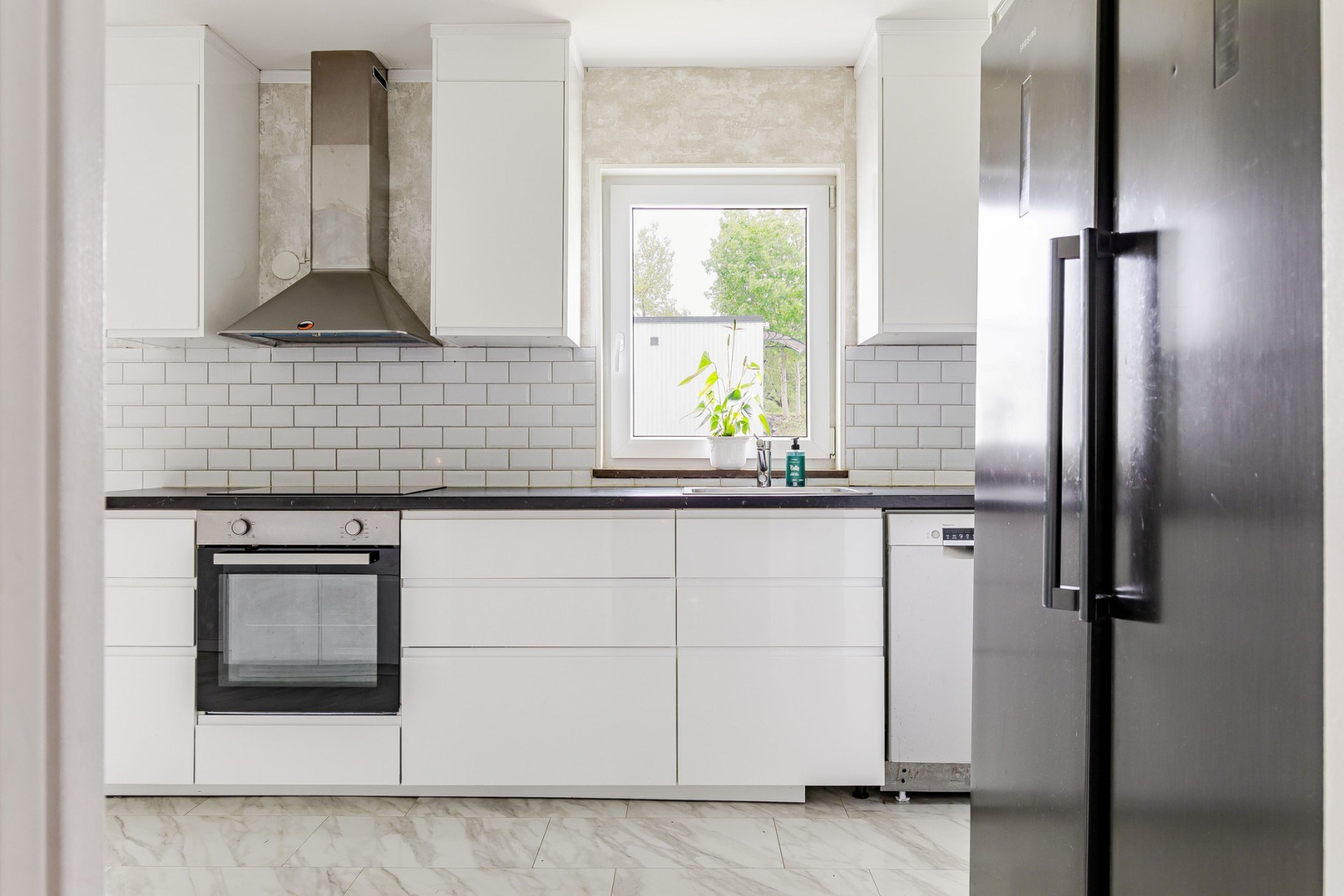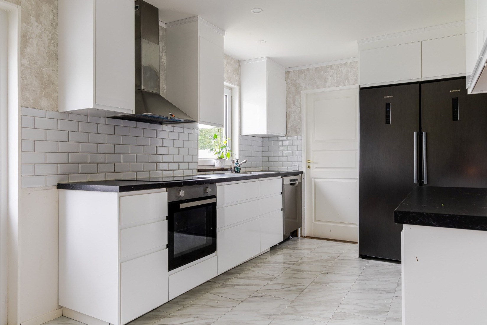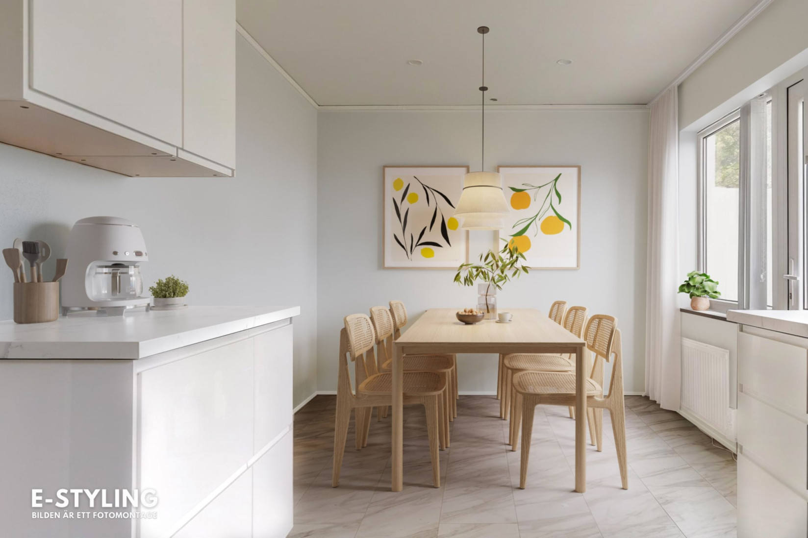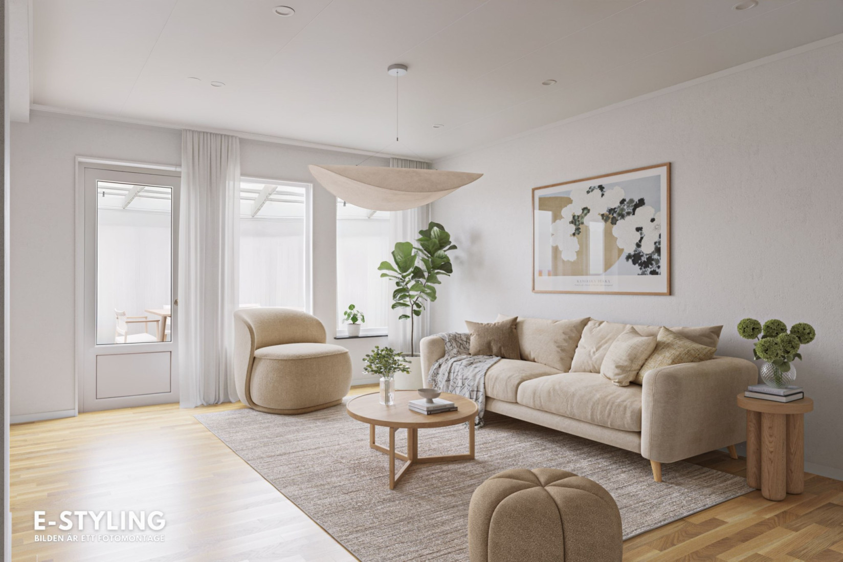 Redan i hallen möts du av ett hem som andas funktion och hemtrevnad. Direkt till vänster ligger ett helkaklat badrum med dusch och tvättavdelning i nära anslutning – smidigt för familjens logistik. I fil vidare in i huset öppnar planlösningen upp sig och bjuder på generösa sällskapsytor där kök, matplats och vardagsrum hänger samman i en luftig helhet. Här ryms både stora middagar och vardagslunk. Köket har bra arbetsytor, gott om förvaring och en naturlig koppling till matplatsen, medan vardagsrummet erbjuder fin kontakt med det nybyggda uterummet – en plats som verkligen förlänger säsongerna. På entréplanet finns även ett rofyllt sovrum, perfekt som master bedroom eller gästrum, samt goda förvaringslösningar i klädkammare och garderober.