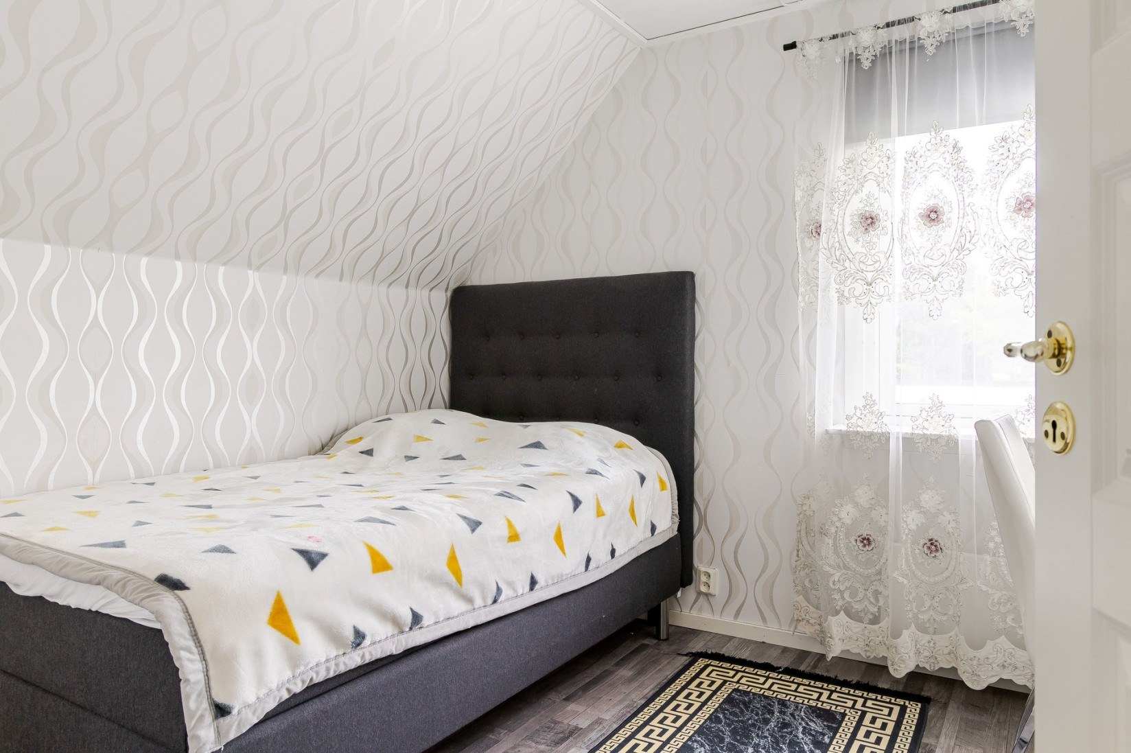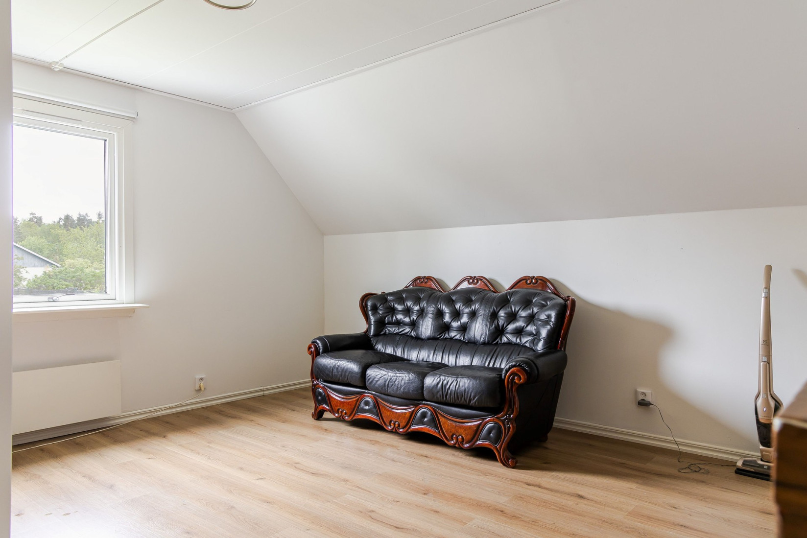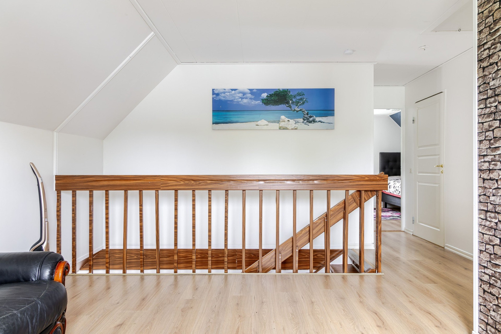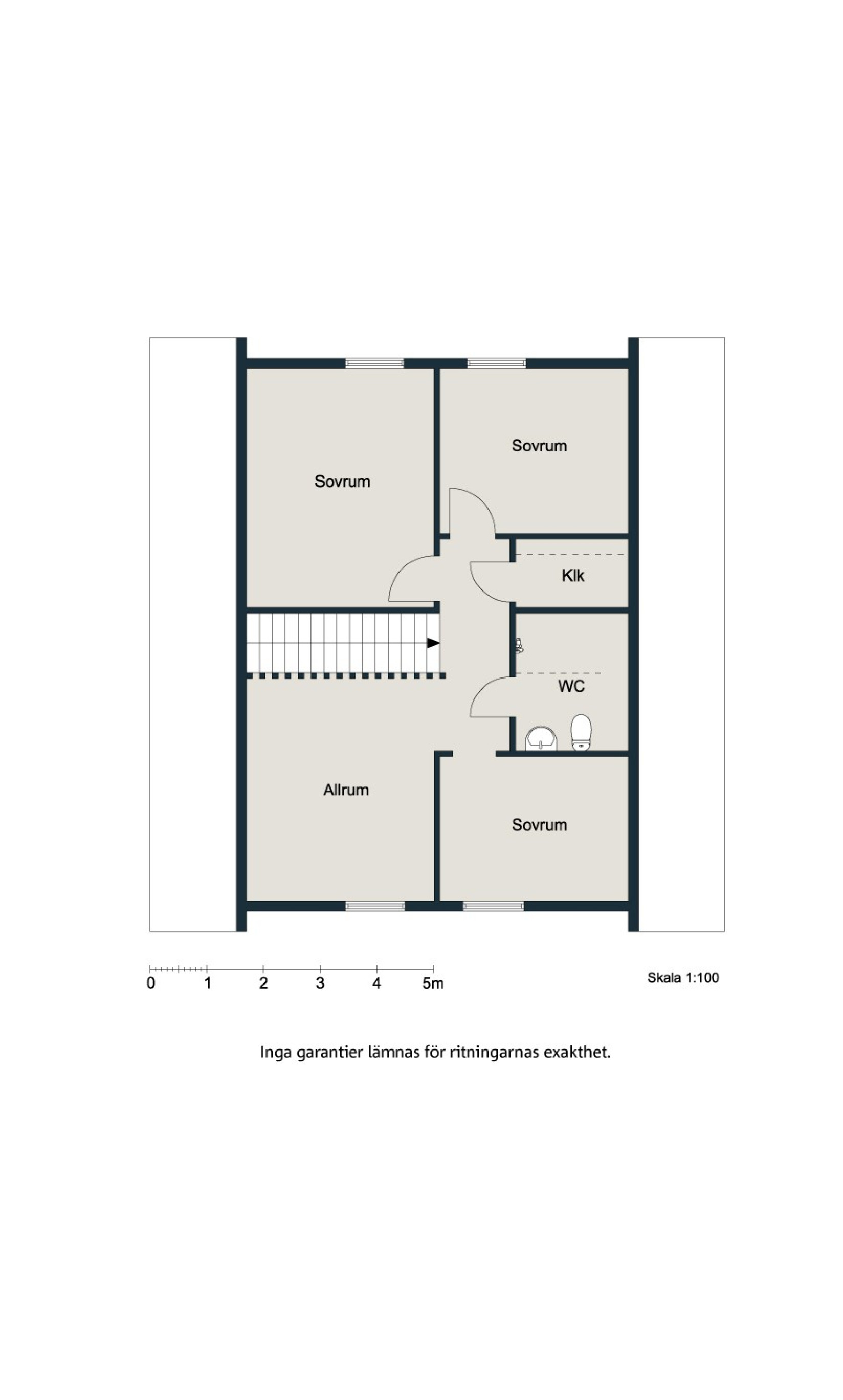 En trappa upp väntar hemmets mer privata delar – perfekt för barnfamiljen eller den som vill ha gott om plats. Här finns tre bra sovrum, ett allrum som passar lika bra som lekrum, kontor eller TV-hörna, samt en klädkammare och en separat WC. Allrummets placering i mitten skapar en naturlig samlingspunkt och ger en fin rumsdisposition som separerar de olika sovrummen på ett sätt som skapar lugn och integritet. Ett plan som enkelt kan formas efter familjens behov – nu och över tid.