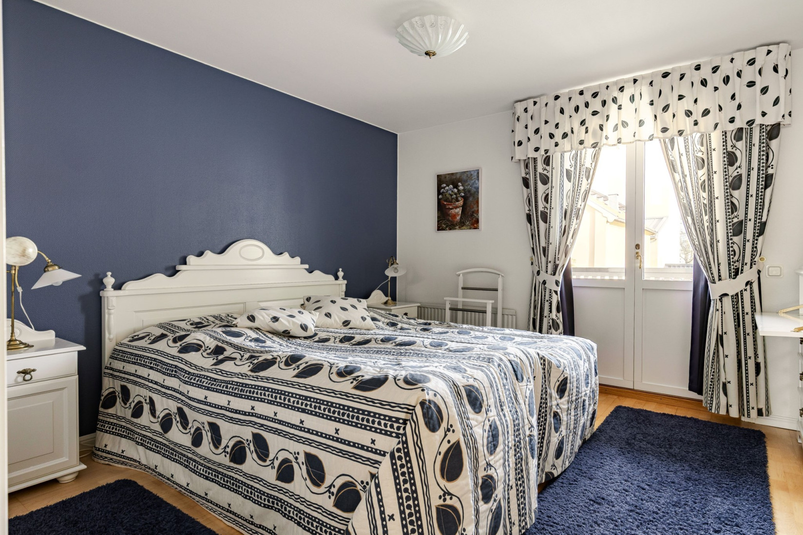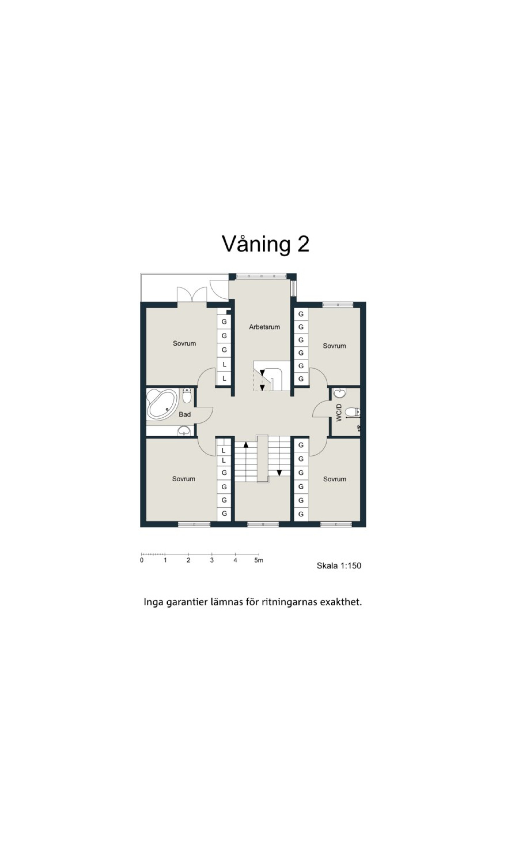 I mitten av huset hittar vi trappan som gör att vi kan röra oss mellan våningsplanen och på övre plan hittar vi alla de fyra sovrummen varav ett idag används som arbetsrum. Sovrummen har bra storlek och fina ljusinsläpp. I anslutning till sovrummen finns två badrum, det ena med dusch och wc och det andra med badkar och wc. På detta våningsplan finns också utgång till en av de två härliga balkongerna.