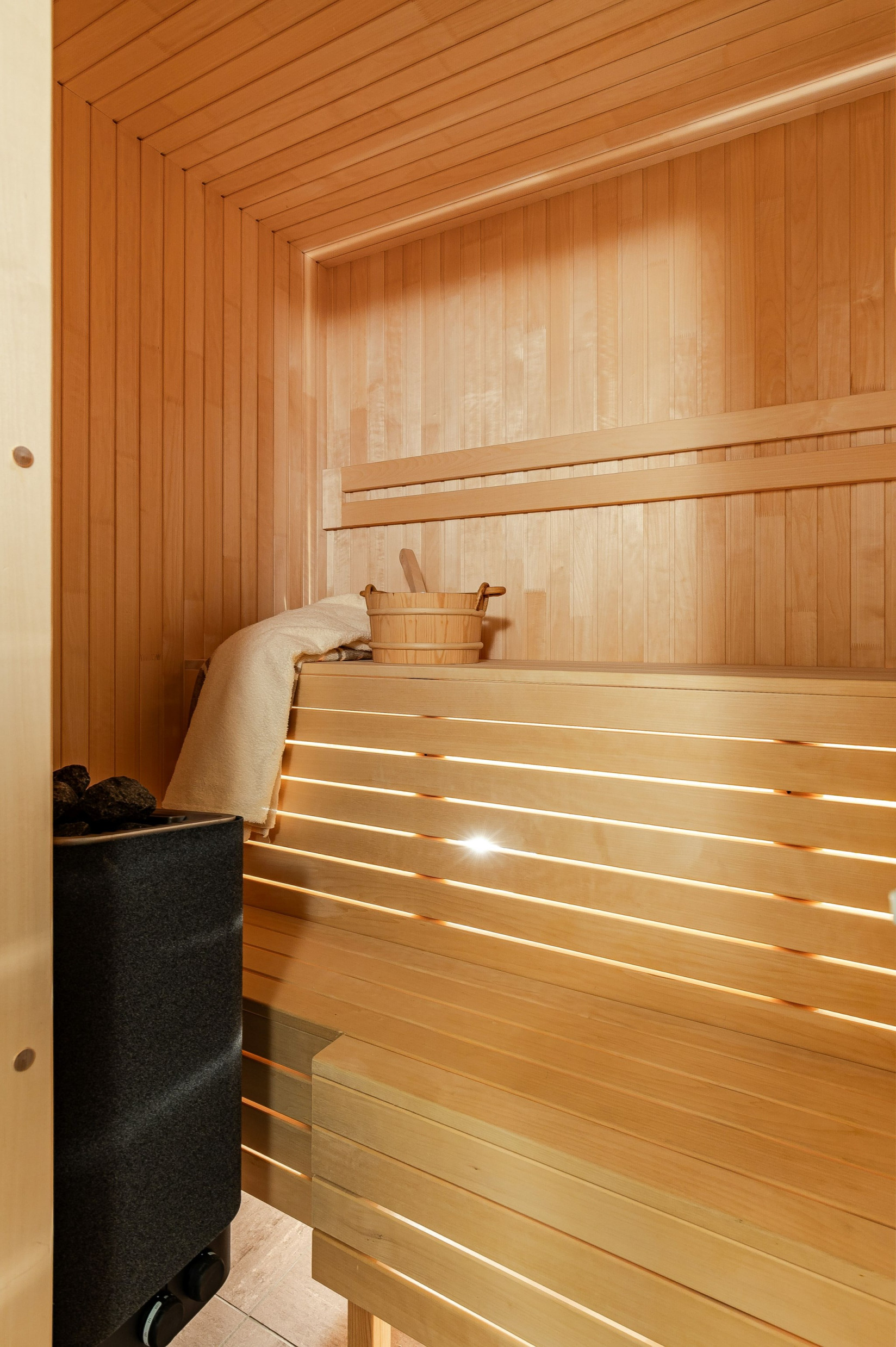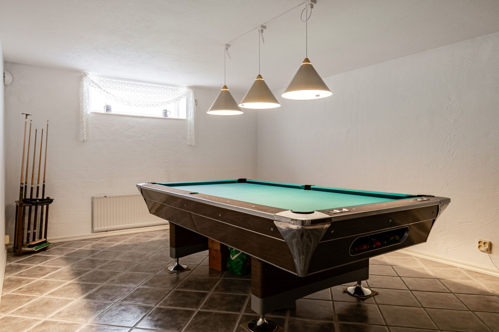 I källaren hittar vi utrymme för förråd men också perfekt plats för biljardbordet. Det är också här nere som vi har tvättstuga samt bastu och vi har värmande slingor i golvet.