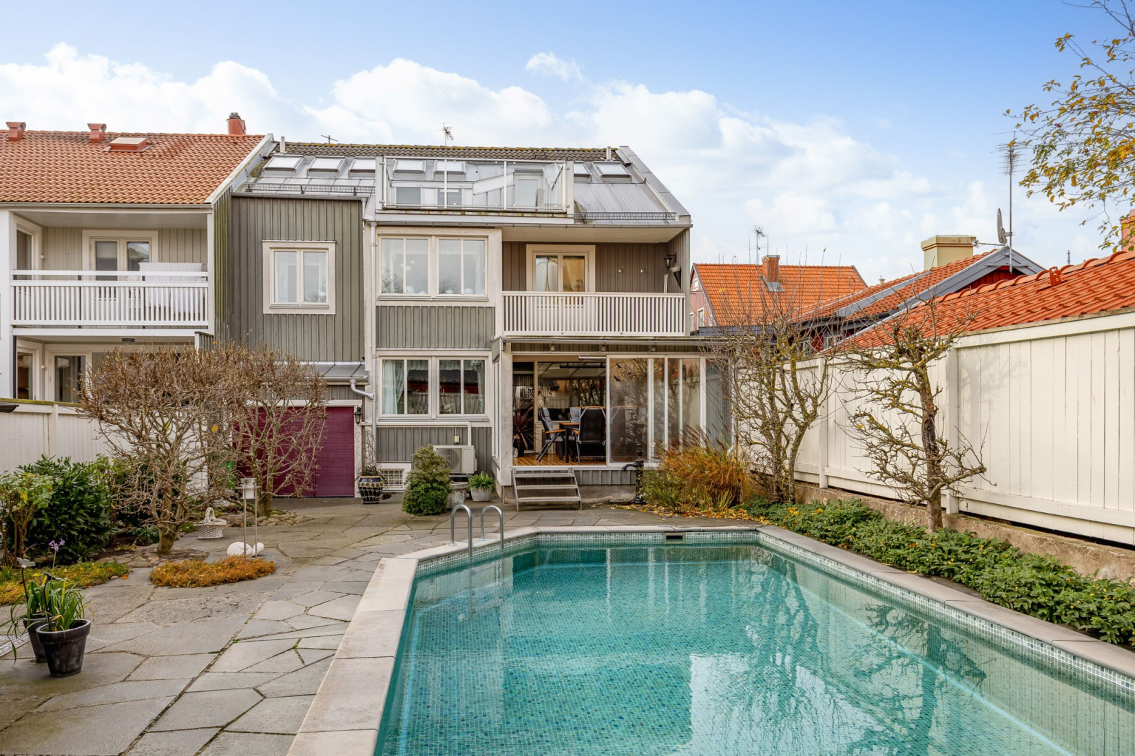 Intill den vackra rosen som klättrar längs fasaden kliver vi in i denna fantastiska villa.