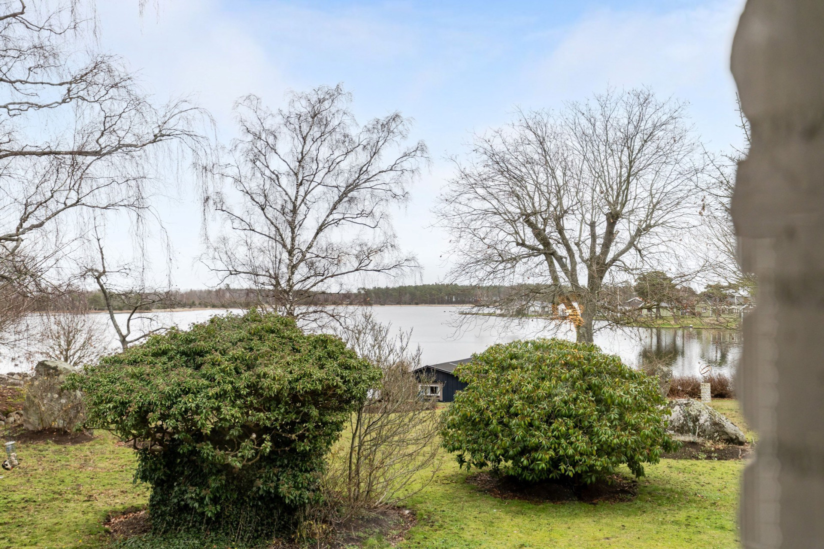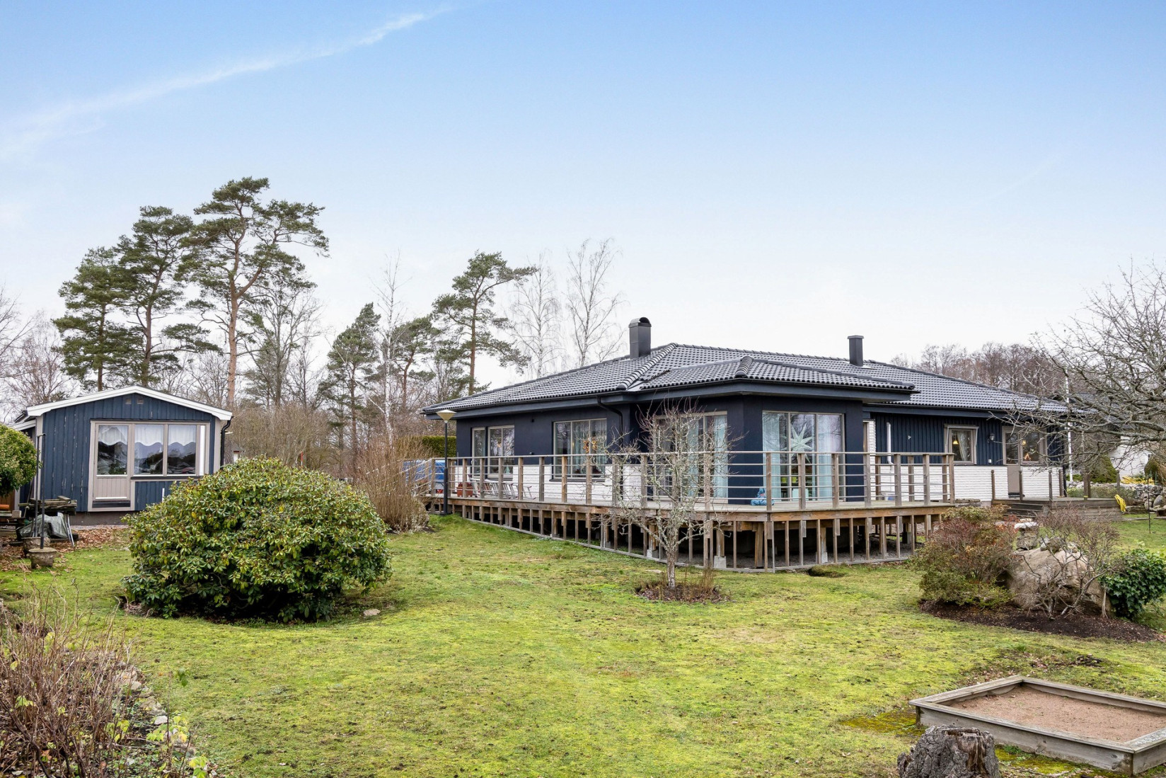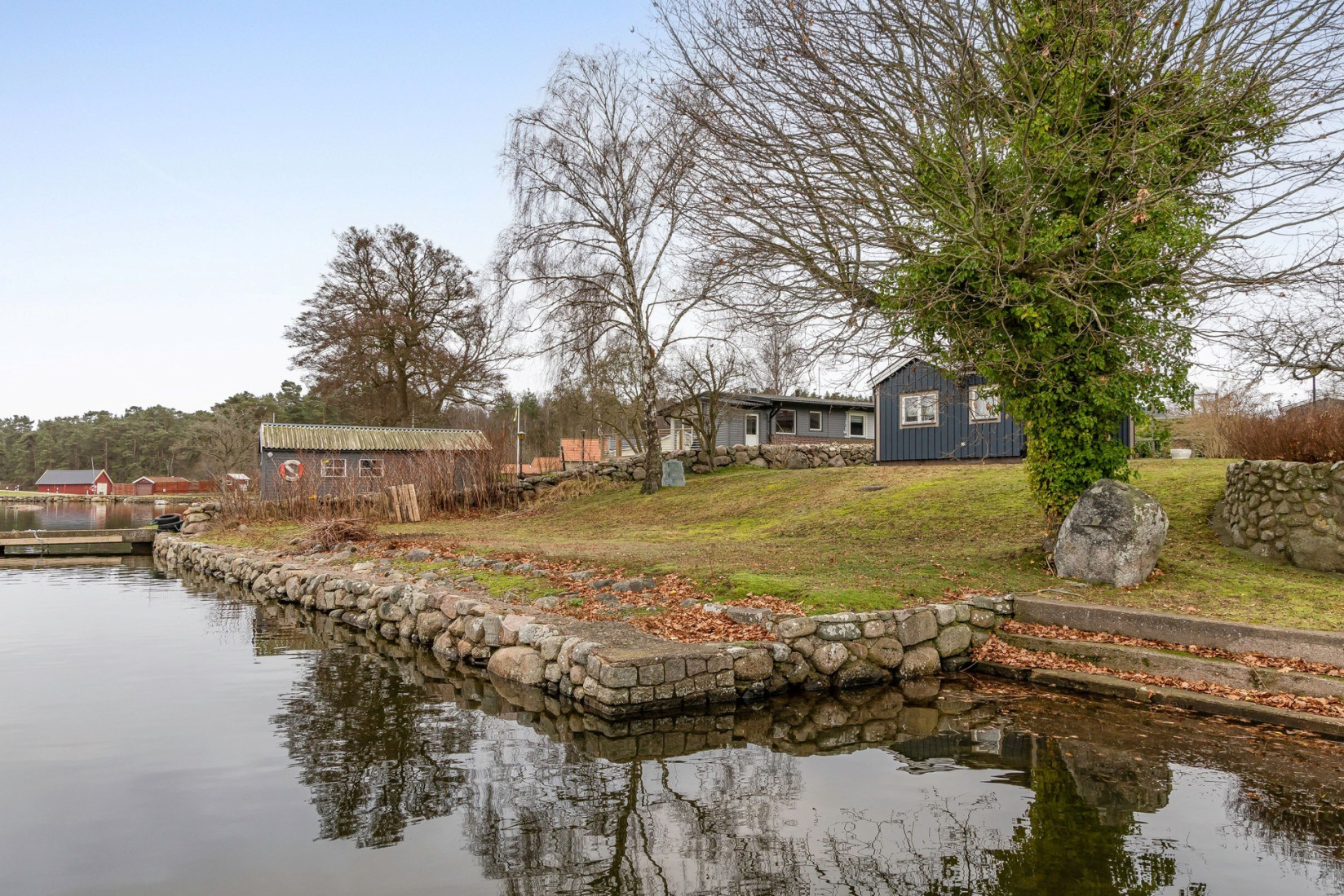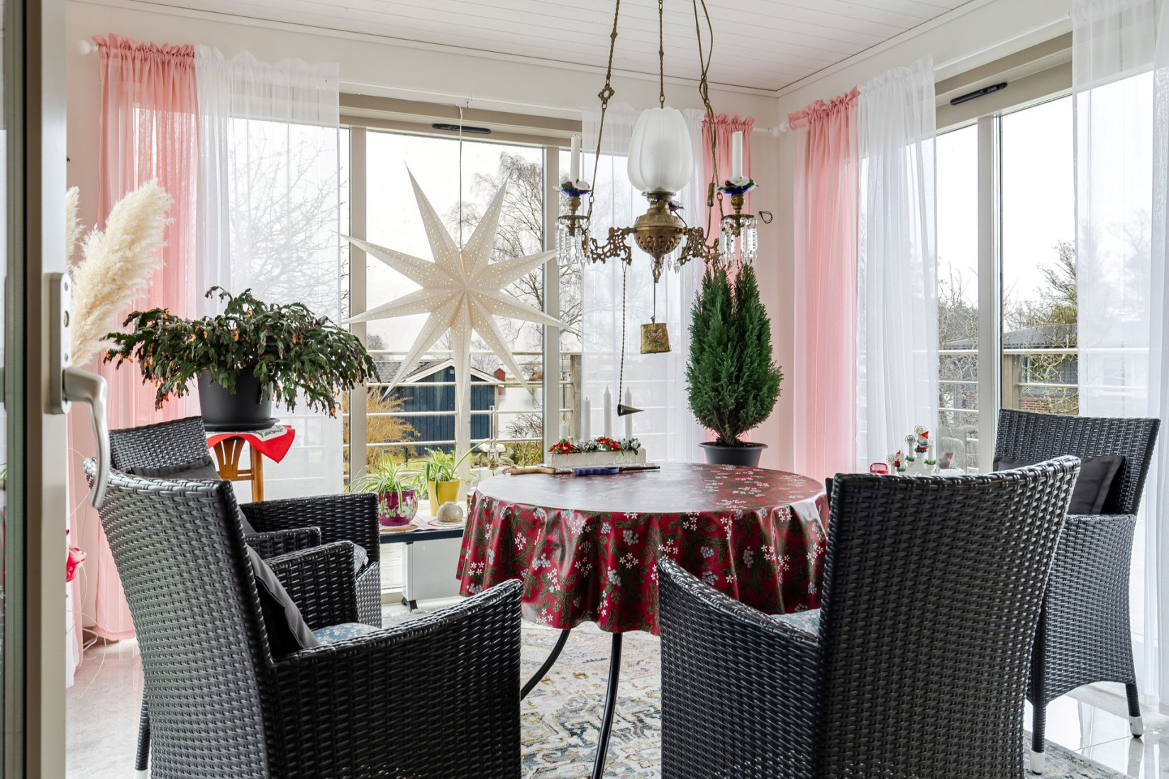 Intill köket finner vi en större sällskapsyta där såväl matplats som en soffgrupp inryms. Centralt placerad i rummet, en värmande kamin som ingjuter såväl en härlig känsla som komfort. Det stora sällskapsrummet förlängs med en tillbyggd och inglasad del. Förmodligen är det här ni kommer att avnjuta era frukostar i takt med att solen går upp över ett glittrande Kalmarsund.
